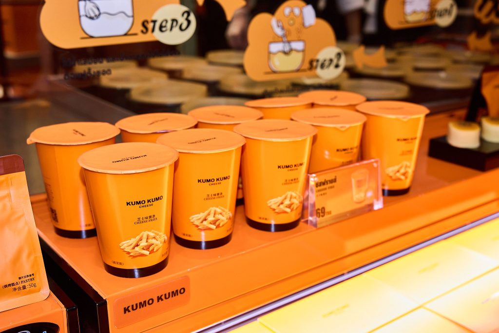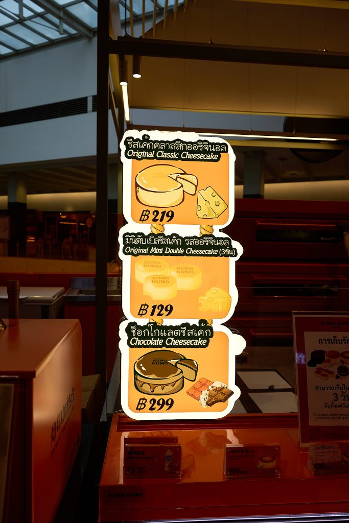 KUMO KUMO CHEESE ชีสเค้กชื่อดังที่มีเอกลักษณ์โดดเด่นด้วยความหอมของชีสเค้กที่ส่งกลิ่นหอมเชิญชวนให้เดินมาลิ้มลอง ไม่ใช่แค่หอมกลิ่นชีสชวนยั่วน้ำลายเพียงอย่างเดียว แต่การตกแต่งร้านด้วยโทนสีส้มก็แสนสะดุดตาถือเป็นอีกหนึ่งซิกเนเจอร์ของร้านด้วยเหมือนกัน อีกทั้งยังมาพร้อมเมนูให้เลือกลิ้มลองความอร่อยมากมายหลากหลายเมนู