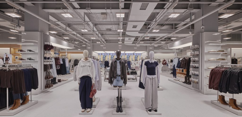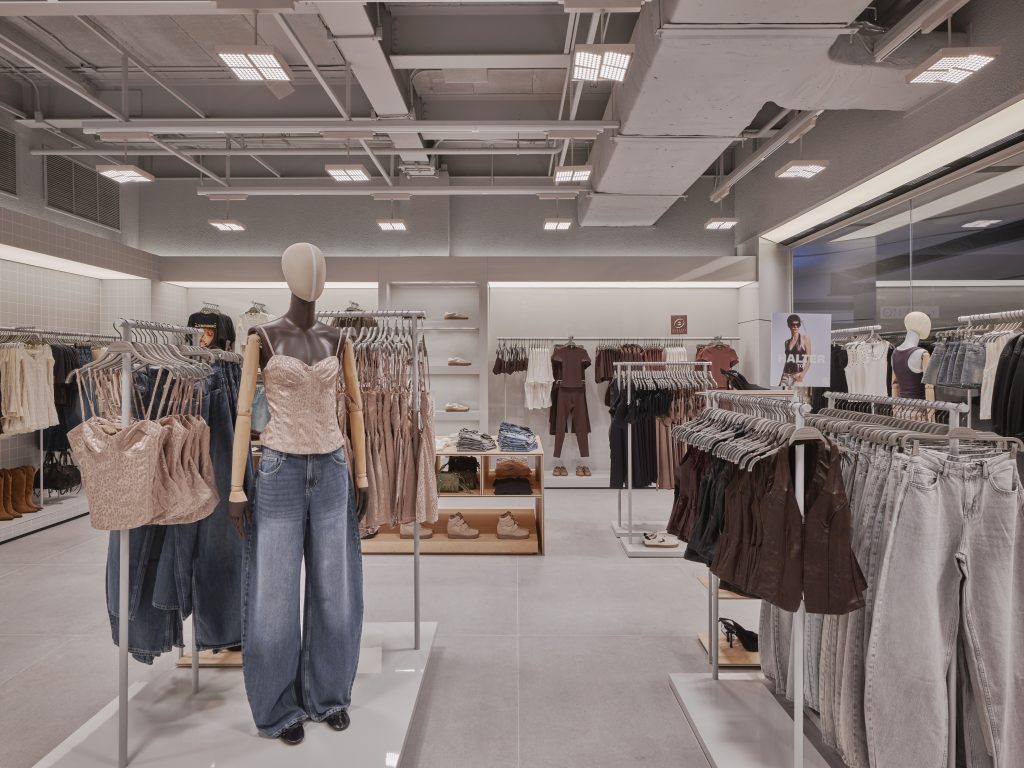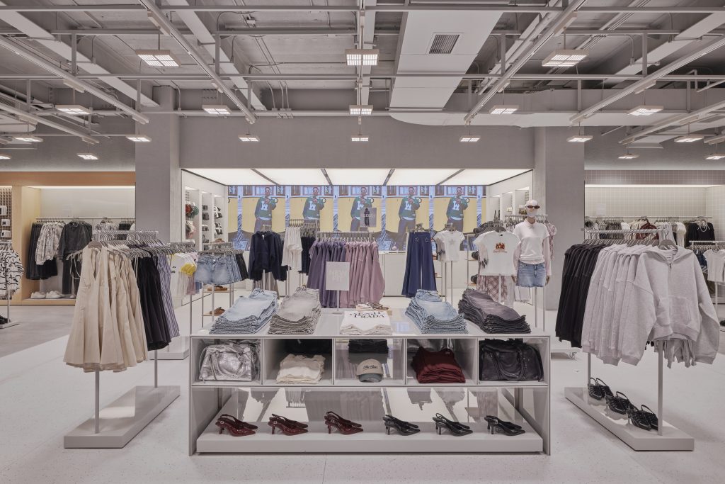 ร้าน BERSHKA คอนเซปต์ใหม่ ณ ศูนย์การค้า centralwOrld ชั้น 2 แห่งนี้ มีขนาดพื้นที่ 424 ตารางเมตร โดยมีดีไซน์ที่เรียบง่ายแต่แฝงไปด้วยลูกเล่นทางโครงสร้าง ซึ่งช่วยเพิ่มมิติและความน่าสนใจในการเดินเลือกชมสินค้า การจัดวางเฟอร์นิเจอร์บริเวณกลางร้านและรอบๆ ร้าน ผสานเข้ากับสถาปัตยกรรมและการออกแบบภายในอย่างลงตัว เพื่อรองรับประสบการณ์การ ช้อปปิ้งของลูกค้าได้อย่างลื่นไหลเป็นธรรมชาติ สำหรับวัสดุและการตกแต่งเน้นเลือกใช้โทน Neutral เพื่อสะท้อนภาพลักษณ์ระดับโลกของแบรนด์ โดดเด่นด้วยเฟอร์นิเจอร์ที่ผสมผสานความแข็งแรงของหินและเหล็ก ในขณะที่ห้องลองชุดบุด้วยกระเบื้องสีขาวที่ให้ความรู้สึกสะอาด โปร่ง และสบายตา นอกจากนี้ พื้นที่ภายในร้านยังได้รับการออกแบบให้เอื้อต่อการใช้งานอย่างสะดวกสบาย ด้วยระบบชำระเงินทั้งแบบปกติ และแบบ Self-checkout รวมถึงโซนห้องลองสินค้าที่จัดวางตามแนวการสัญจรภายในร้านอย่างเหมาะสม ซึ่งจะช่วยให้การช้อปปิ้งเป็นไปอย่างเพลิดเพลิน