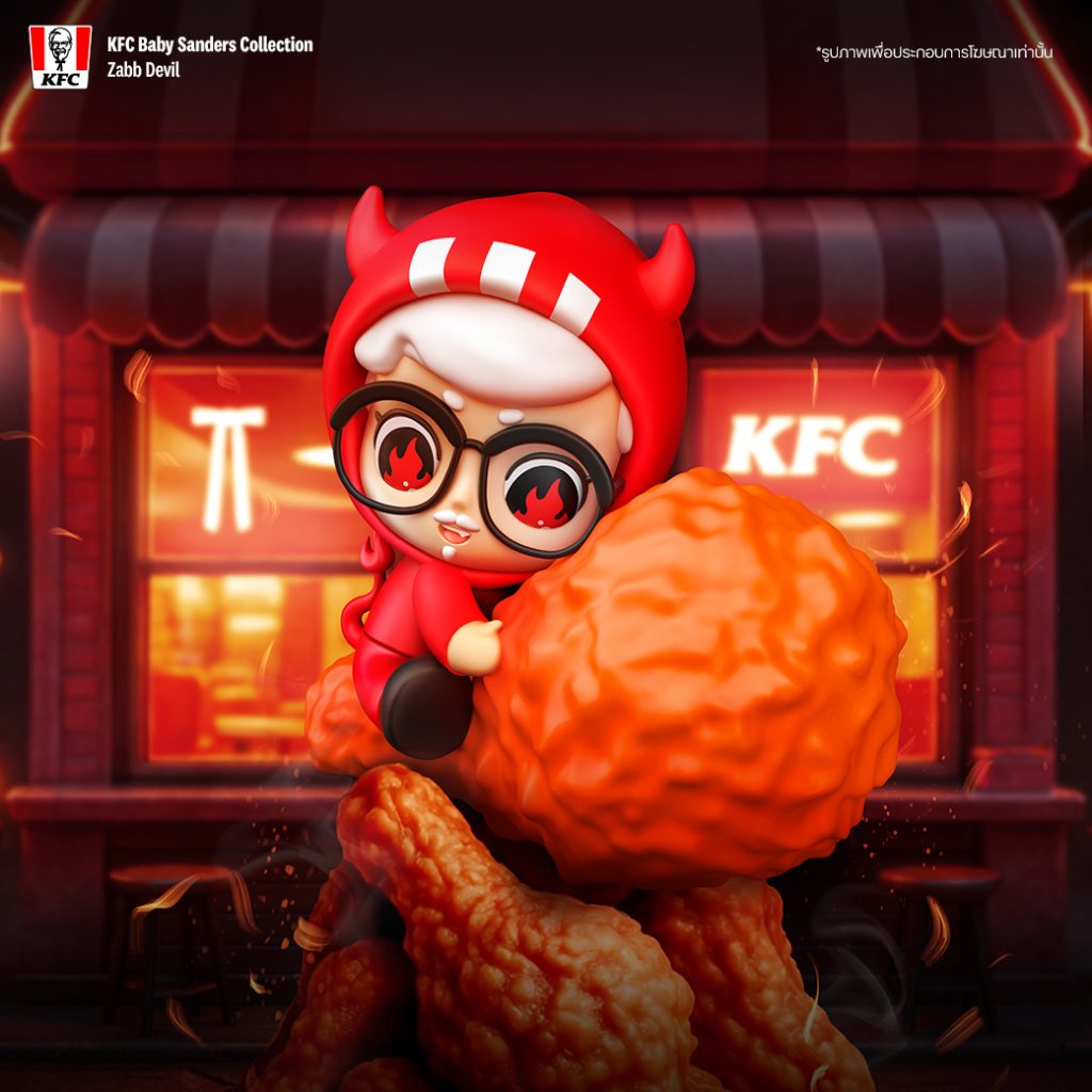 - “Zabb Devil” ถ้าเธอแซ่บ ฉันก็แซ่บ! แปลงร่างวิงซ์แซ่บตัวร้ายซิกเนเจอร์ของ KFC ให้กลายเป็นเดวิลน้อยสุดน่ารัก ที่รับประกันความแซ่บทุกคำที่กัด ใครคิดว่าตัวเองทนความน่ารักไหว… ขอบอกเลยว่าเจอตัวนี้ไปเกินต้านแน่นอน!