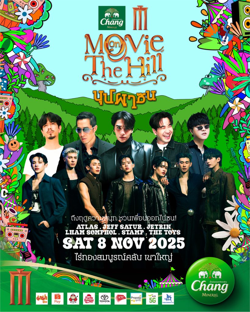 เตรียมตัวให้พร้อม! กลับมาอีกครั้งกับเทศกาลดนตรีและภาพยนตร์กลางแจ้งสุดยิ่งใหญ่ Movie on the Hill” ครั้งที่ 6 ที่น้ำแร่ธรรมชาติตราช้าง ร่วมกับ บริษัท เมเจอร์ ซีนีเพล็กซ์ กรุ้ป จำกัด (มหาชน) ขนความสนุกแบบจัดเต็มมาเอาใจเพื่อน ๆ  ในคอนเซ็ปต์สุดครีเอทีฟ บุปผาซน” ที่สะท้อนสีสัน ความสุข และพลังแห่งการปลดปล่อยความสนุกอย่างเต็มที่ โดยในปีนี้จัดหนักด้วยไลน์อัปศิลปินสุดฮอต ไม่ว่าจะเป็น ATLAS, JEFF SATUR, THE TOYS, JETRIN, STAMP และ LHAM SOMPHOL ที่จะมาร่วมกันสร้างความสนุกสนานบนเวทีเดียวกัน และการฉายภาพยนตร์กลางแจ้งสุดประทับใจเรื่อง Long Live Love ในบรรยากาศสุดชิลที่ ไร่ทองสมบูรณ์คลับ เขาใหญ่ วันเสาร์ที่ 8 พฤศจิกายน 2568