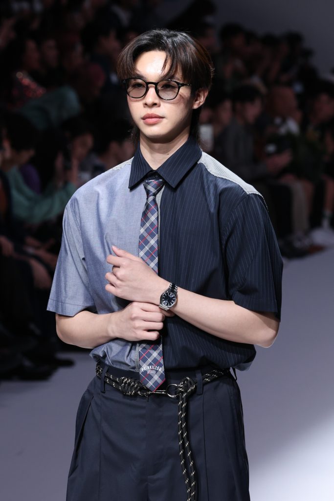 นอกจากรันเวย์ลุคสุดตระการตา หนุ่ม อเล็กซ์-อเล็กซานเดอร์ ยังมีไอเทมลับอัปสไตล์ให้ดูเท่และคลาสสิกขึ้นไปอีกระดับด้วย CITIZEN TSUYOSA 37 mm “Time Slip” Limited Edition ที่มีจำนวนจำกัดเพียง 8,000 เรือนทั่วโลก นาฬิกาที่สุดแห่งความคลาสสิกเหนือกาลเวลา ที่มีขนาดกระทัดรัด ด้วยตัวเรือน 37 มม. เหมาะกับทุกลุคทุกสไตล์ หนุ่ม อเล็กซ์ ปรากฏตัวในลุคสุดเท่ ด้วยเสื้อแขนกุดสีดำแมทช์กับกางเกงสีกรมลายริ้ว เสริมลุคให้สมบูรณ์แบบด้วยการทับเสื้อกั๊กสีดำสุดมินิมอล จาก PAINKILLER Atelier