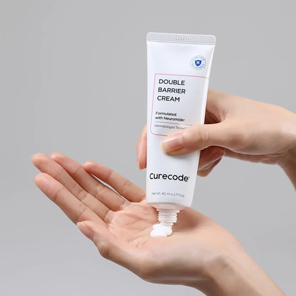 1) CURECODE DOUBLE BARRIER CREAM ครีมบำรุงผิวที่ออกแบบมาเพื่อฟื้นฟูและเสริมสร้างเกราะป้องกันผิวให้แข็งแรง ด้วยส่วนผสมของ Neuromide ช่วยลดการอักเสบของผิวและเพิ่มความชุ่มชื้นให้กับผิวอย่างล้ำลึกยาวนาน 72 ชั่วโมง นอกจากนี้ยังช่วยฟื้นฟูสมดุลไมโครไบโอมผิว มี Vitis Vinifera Seed Oil (น้ำมันเมล็ดองุ่น) ช่วยลดการอักเสบเติมความชุ่มชื้น และป้องกันการสูญเสียน้ำจากผิว ราคา 1,099 บาท