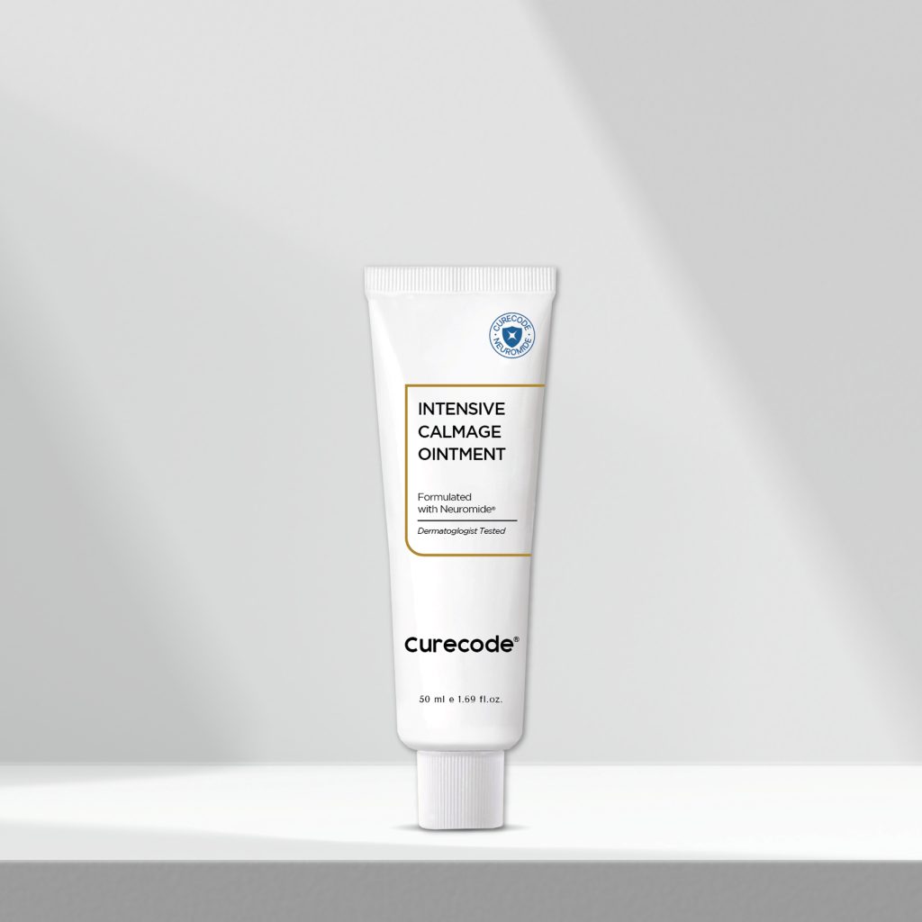 3) CURECODE INTENSIVE CALMAGE OINTMENT บาล์มเข้มข้นสำหรับผิวบอบบาง ฟื้นฟูผิวแห้งแตกให้แข็งแรง ลดเลือนริ้วรอยและผิวหน้าแดงจากการอักเสบเรื้อรังสะสม เพิ่มการกักเก็บความชุ่มชื้น มีส่วนผสม Liposome Genistein ที่ช่วยให้ผิวเปล่งปลั่งนุ่มเนียน ลดเลือนริ้วรอย และช่วยลดการอักเสบใต้ผิวส่วนเกิน (Inflammaging) ราคา 1,499 บาท