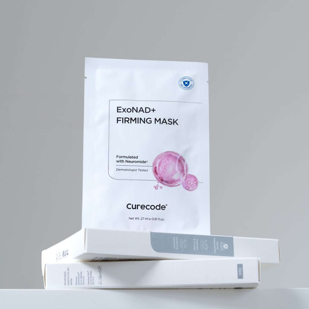 4) CURECODE ExoNAD+ FIRMIING MASK มาส์กนวัตกรรมใหม่เจ้าแรกที่ผสาน Exosome และ NAD⁺ ฟื้นฟูผิวลึกถึงระดับเซลล์ โครงสร้างและพลังงานเซลล์ การันตีด้วยผลทดสอบทางทางคลินิกว่า ริ้วรอยลึกลดลง 10.4% ภายใน 1 กล่อง (5 แผ่น) ความหนาแน่นผิวเพิ่มขึ้น 30% ความชุ่มชื้นผิวพุ่งสูงถึง 92% ผิวกระจ่างใสขึ้น 100% และผิวแข็งแรงขึ้น 6.3% ราคา 699 บาท